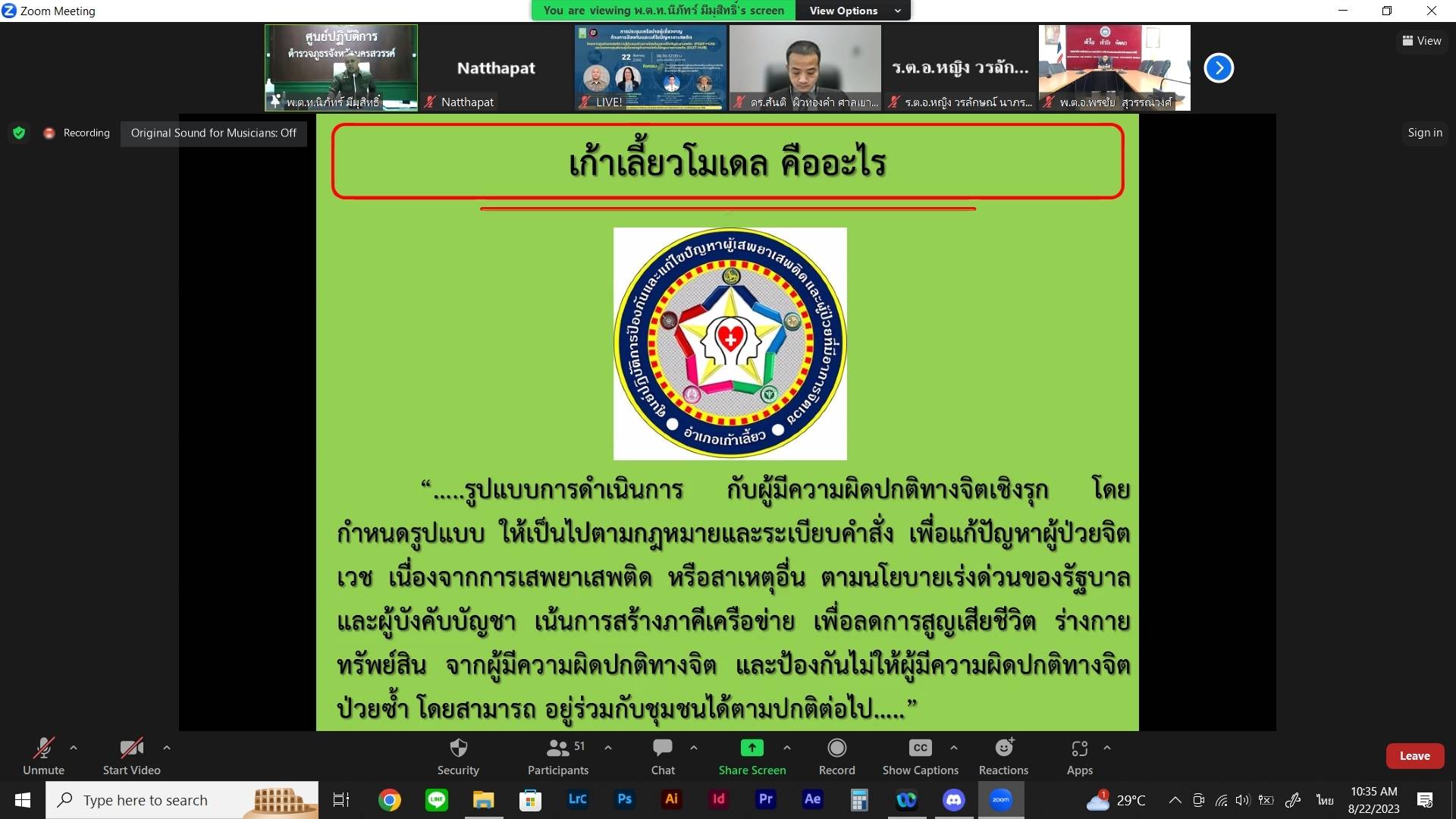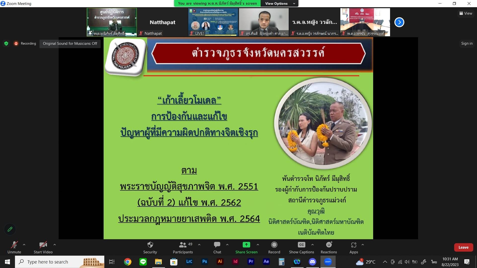 ซึ่งได้รับเกียรติจาก ดร.สันติ ผิวทองคำ ผู้พิพากษาศาลเยาวชนและครอบครัว จังหวัดระยอง บรรยายหัวข้อ “การบังคับใช้กฎหมายยาเสพติด” และ พันตำรวจโท นิภัทร์ มีมุสิทธิ์ รองผู้กำกับการป้องกันปราบปรามสถานีตำรวจภูธรแม่วงก์ จังหวัดนครสวรรค์ บรรยายหัวข้อ “เก้าเลี้ยวโมเดล การป้องกันแก้ไขผู้มีความผิดปกติทางจิตเชิงรุก”